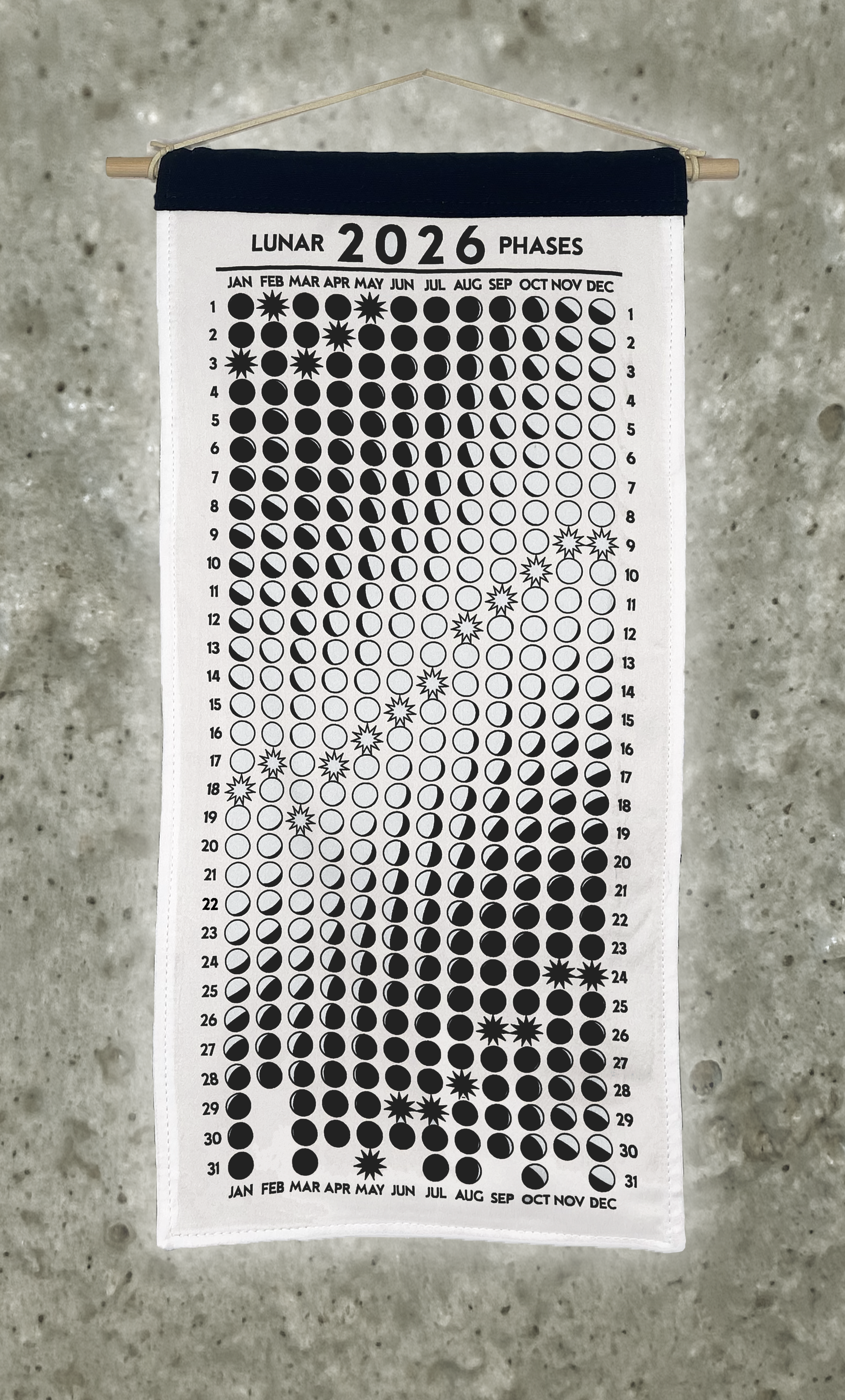 Lunar Phase Calendar 2026 - Undyed Silk w/ Black Ink