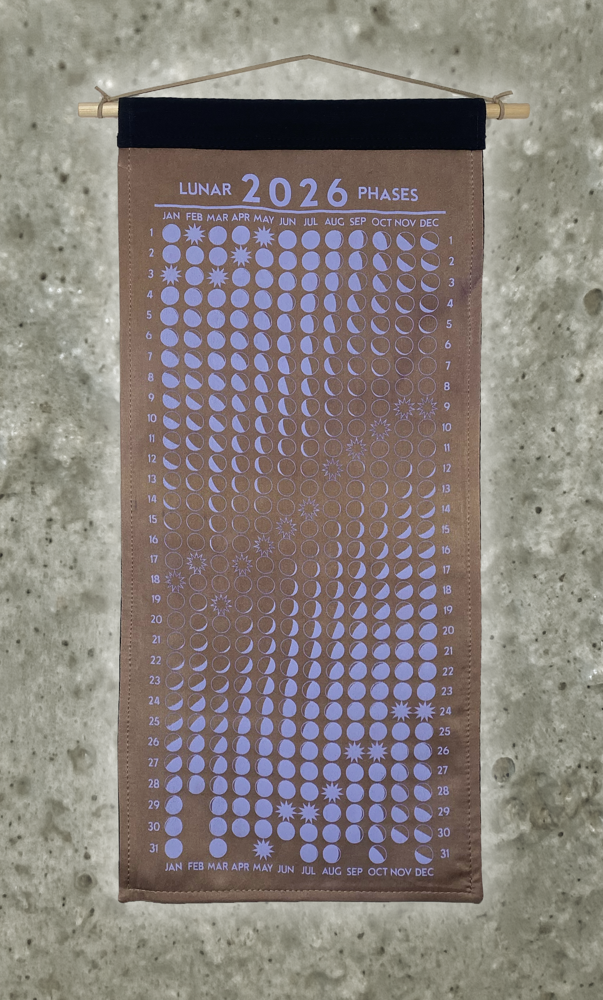 Lunar Phase Calendar 2026 - Deep Sappanwood Silk w/ Lavender Print
