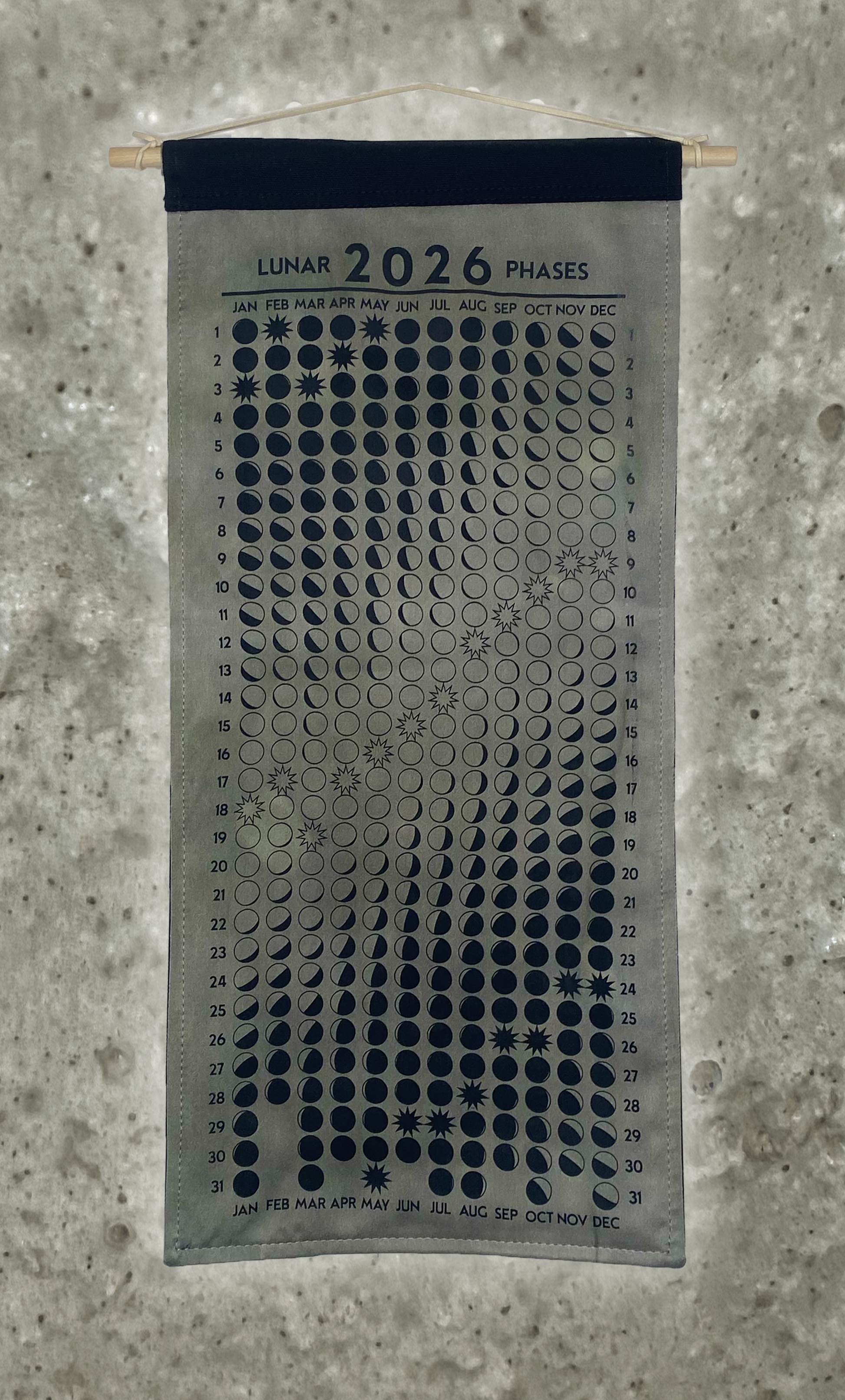 Lunar Phase Calendar 2026 - Light Drab Logwood/Weld Silk w/ Black Print