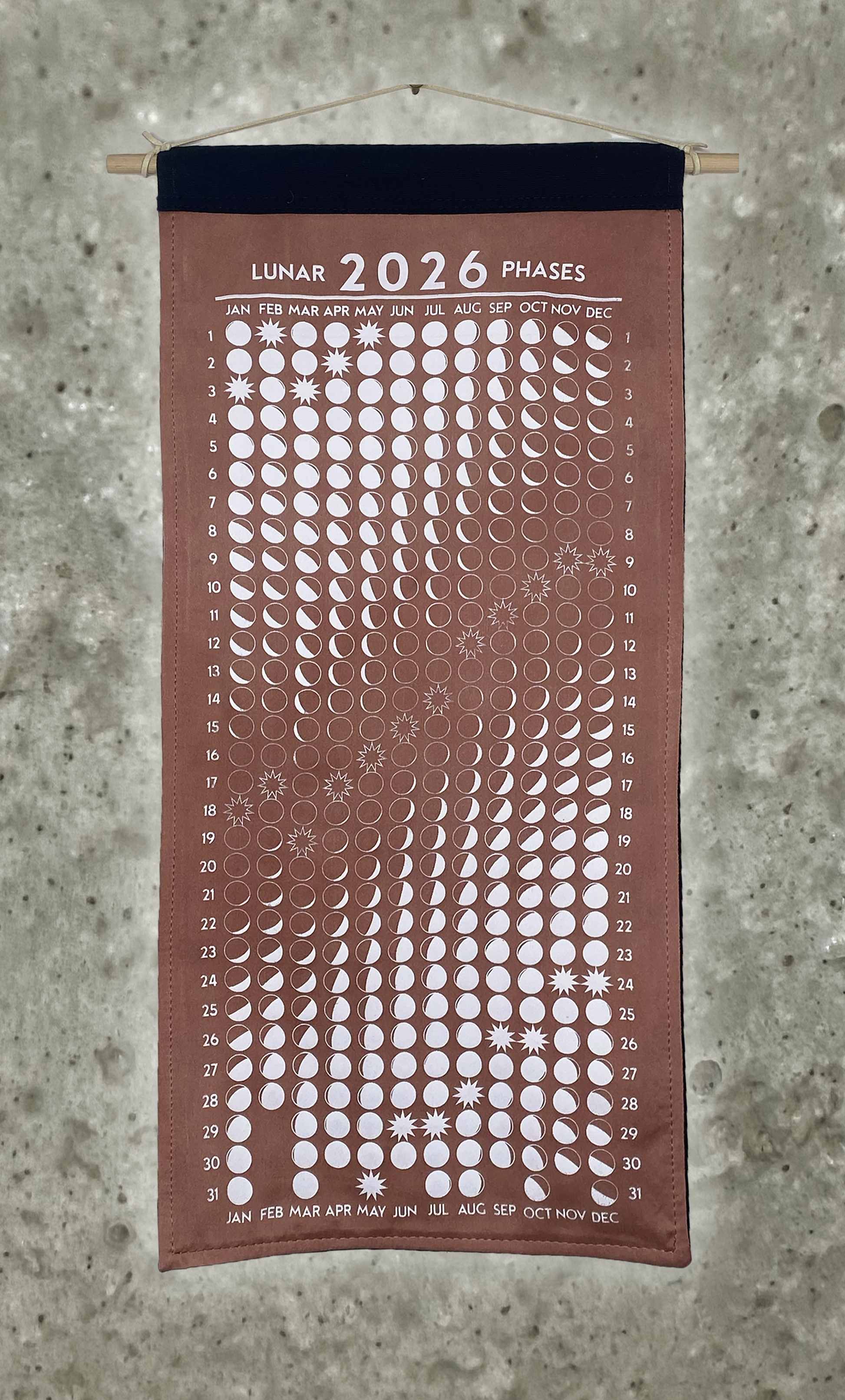 Lunar Phase Calendar 2026 - Madder Silk w/ White Print